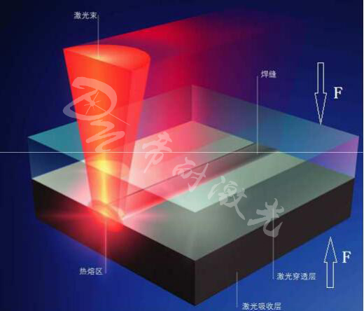塑料激光焊接原理:通過壓力将兩個待焊接塑料零部件結合在一起,将一束紅外激光定位於待粘結部位,激光束透過上層透光材料,被下層材料吸收,吸收的激光能量轉換成熱能,由於兩層材料被壓在一起,熱能從吸收層傳導到透光層上,使得兩層材料熔化並(bìng)結合。同時由於材料本身的熱膨脹擴張産生内部壓力,内部壓力與外部壓力共同作用確保瞭(le)兩部分的堅固焊接。對於産品本身是不吸光的下層材料,需要添加吸收劑進行處理。
