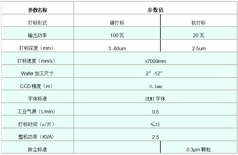 1 CCD自動精確定位;2 機械手臂自動取放片;3正反面都可打标;4專業除塵系統;5自動計數;6空料自動跳片;(選裝)7 卡塞數(選裝)。